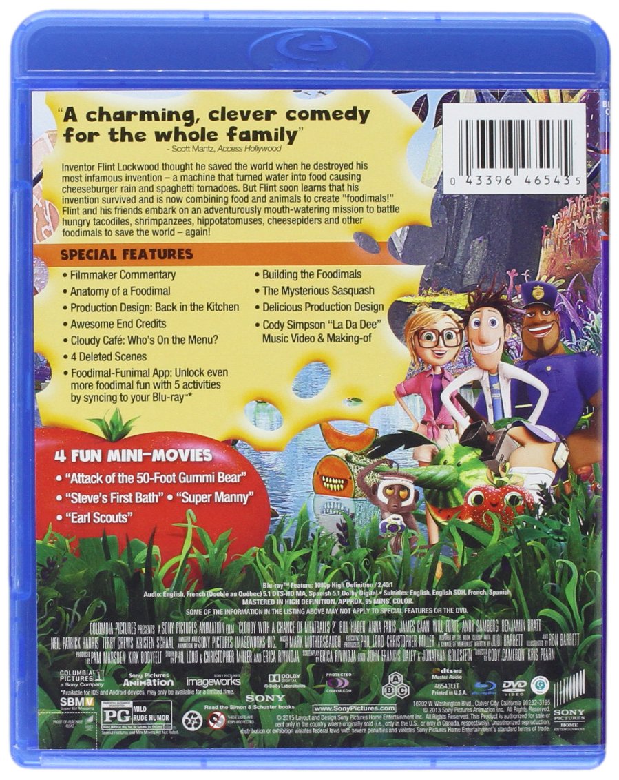 Cloudy with a chance of meatballs 2 is a 2013 american computer animated science fiction comedy film produced by columbia pictures and sony pictures animation animated by sony pictures imageworks and distributed by sony pictures releasingthe sequel to 2009s cloudy with a chance of meatballs which in turn was loosely based on judi and ron barretts book of the same name however the film. Read about the cloudy with a chance of meatballs 2 dvd and browse other dvd movies. All music is composed by mark mothersbaugh except where noted.