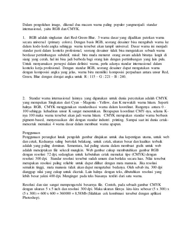 Perbedaan inilah yang kemudian menyebabkan seringnya terjadi kesalahan atau hasil yang tidak diinginkan dari warna akhir melalui proses cetak yang dilakukan desainer atau bukan. Rgb dan cmyk merupakan tipe warna yang berbeda. The process for me was raw to tiff to scribus open source publishing tool to pdfx 3with this pdf format if i understand correctly the rgb to cmyk conversion is done by the printer with certain settings contained in the colour profile.