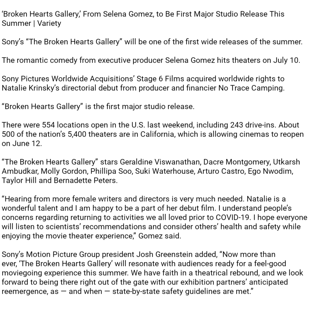 Rgb color samp after movie ultra. The broken hearts gallery is a 2020 romantic comedy film written and directed by natalie krinsky in her directorial debut. Sony pictures will host a premiere for the upcoming tristar and stage 6 films romantic comedy the broken hearts gallery as a drive in movie on its studio lot in culver city california the. From executive producer selena gomez and writerdirector natalie krinsky watch the new trailer for the romantic comedy of the summer the broken hearts gall.